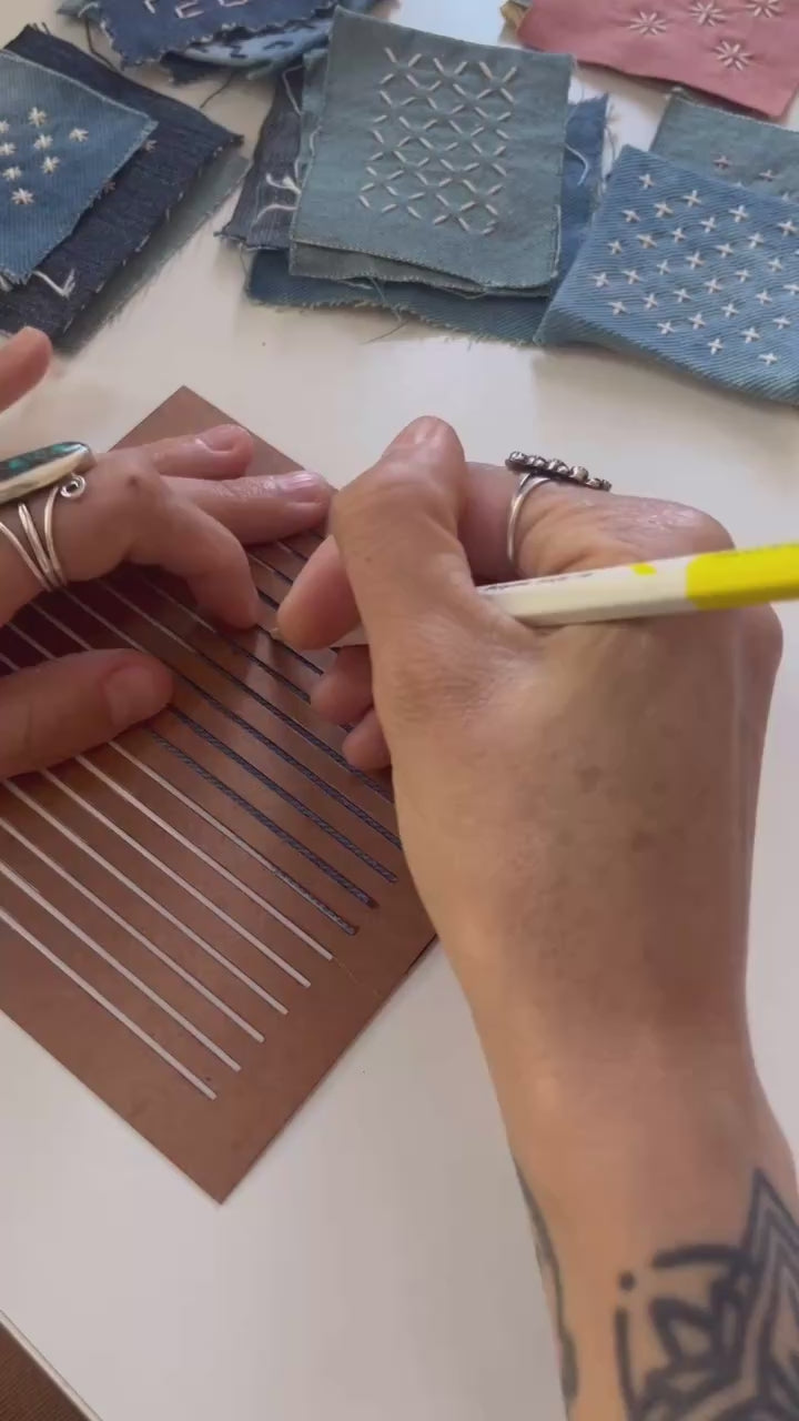 Quickly draw a range of grids, from 1/4 inch and up, to use in your sashiko stitching projects. After years of using a ruler to mark and measure out grids I designed this stencil mainly for my students, so that it's easy and fast for drawing out 1/4" grids.